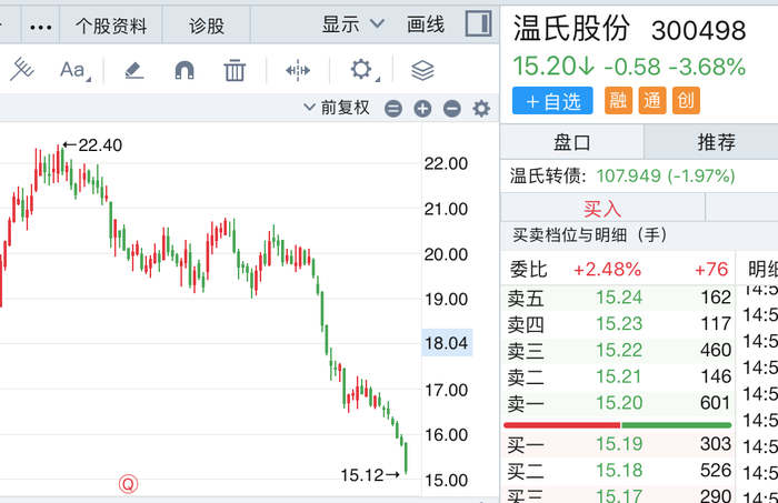 温氏股份9月18日收盘价15.2元,与回购价格的上限有巨大差距。今年5月28日以来温氏股份的累计跌幅达到了31%。