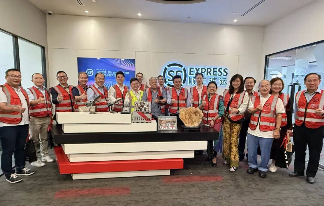 近日,新加坡中国商会会长卓潮来、前会长吴多深率团,携二十余位理事及商界代表莅临顺丰新加坡分拨中心参观交流。